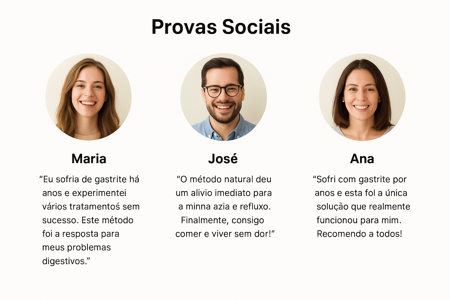 Aqui está a versão ajustada para ser mais equilibrada e realista, evitando promessas exageradas: "Imagine viver sem a preocupação constante com dor no estômago, queimação ou refluxo. Com o Método Natural de 21 Dias, você poderá desfrutar de suas refeições sem receio de crises e se sentir com mais disposição e energia. Seu sistema digestivo pode se equilibrar, ajudando você a se sentir mais leve e saudável, com menos dependência de medicamentos. A verdadeira liberdade digestiva está ao seu alcance – sem sacrifícios, sem dietas restritivas, apenas uma vida mais confortável e com mais bem-estar."s.